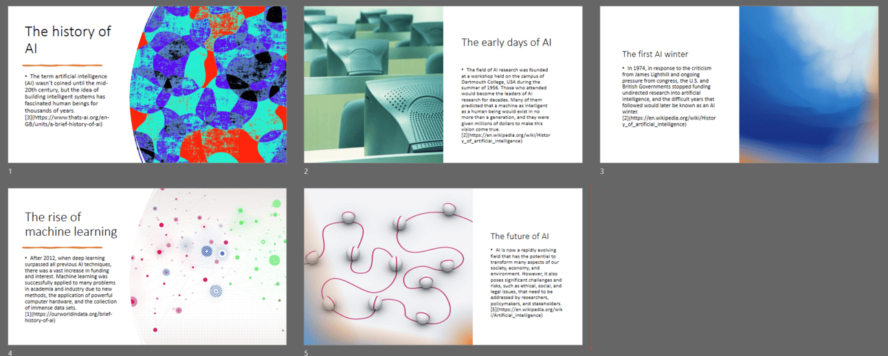 BAM - in less than 5 minutes, you have an awesome PPT deck on the history of AI.