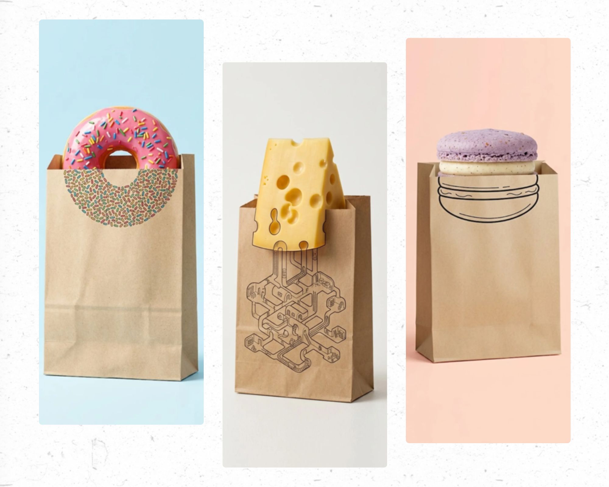 a hyper-realistic [food type] placed inside a clean paper bag,