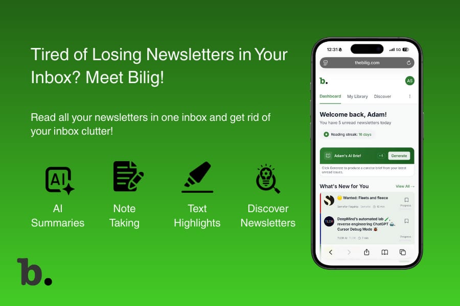 Bilig gives you a dedicated, beautiful space to read and organize newsletters. Discover hundreds of hand-picked newsletters, use AI summaries, and build a high-quality information feed.