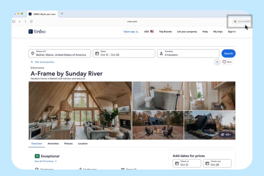 Atlas brings ChatGPT into the browser to understand pages and act on your behalf. It includes a new tab page for chat, plus tabs for search, links, images, videos, and news (where available).