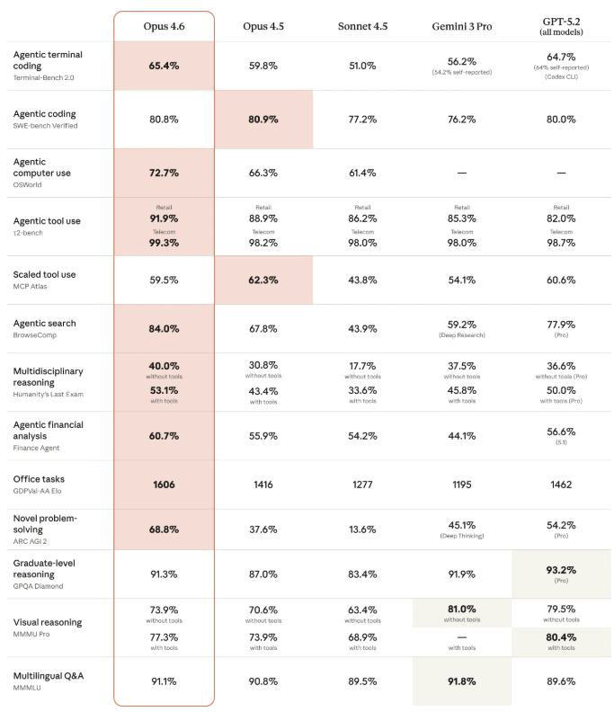 Intelligence: Anthropic released Claude Opus 4.6 with improved coding skills, 1M token context window (a first for Opus-class models), and the ability to sustain agentic tasks longer while operating more reliably in larger codebases. The model achieves highest scores on Terminal-Bench 2.0 agentic coding evaluation and outperforms GPT-5.2 by around 144 Elo points on GDPval-AA economically valuable knowledge work tasks.