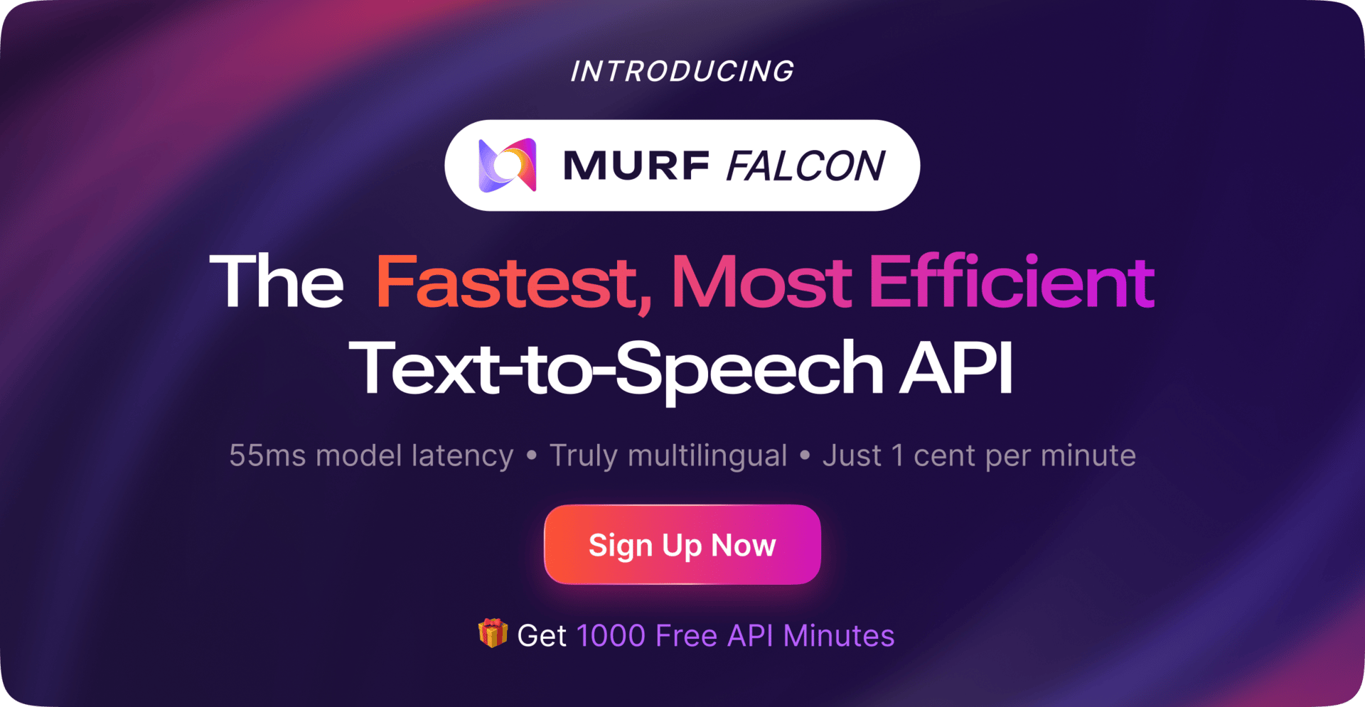 Murf Falcon Text-to-Speech API lets you build voice agents that are ultra-fast, expressive, scalable, and cost-efficient, all at once.