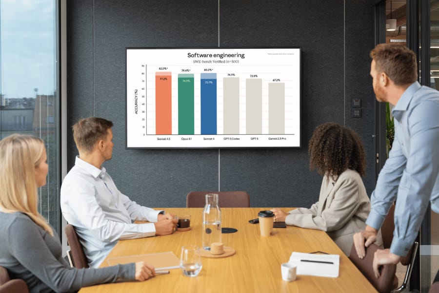 Anthropic says Sonnet4.5 is state-of-the-art on the SWE bench, verified for real-world coding. It leads OSWorld at 61.4 percent for computer use, maintains focus for more than thirty hours on complex tasks, and shows gains in reasoning and math, with expert reviews citing better domain knowledge.