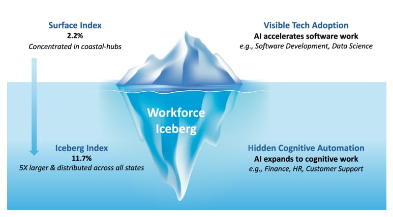 The Iceberg Index reframes this by measuring where AI can technically perform human skills, not where adoption has already happened.