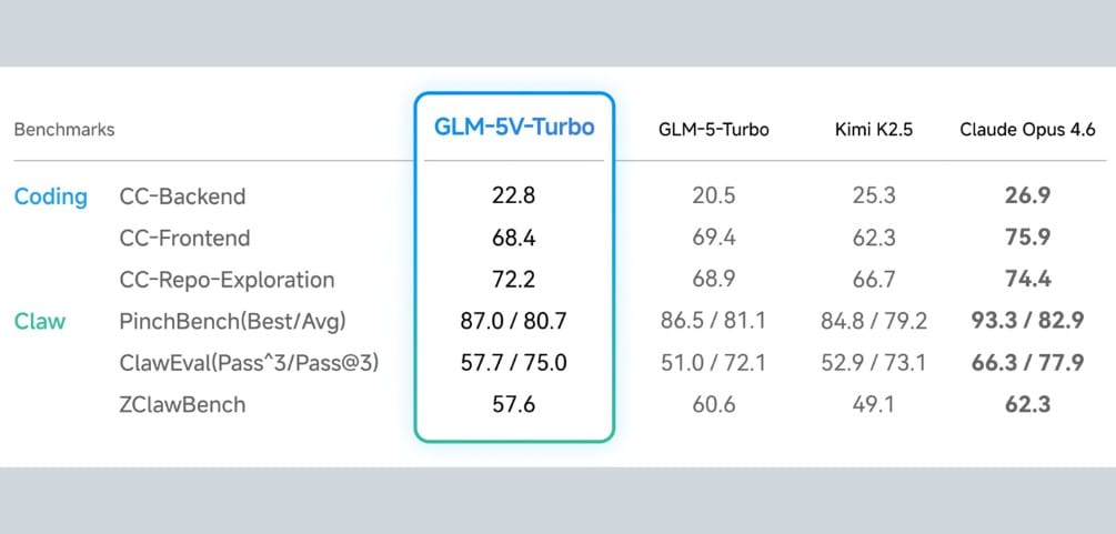 Intelligence: Zhipu AI released GLM-5V-Turbo, a vision-language coding model using Native Multimodal Fusion to directly process images, videos, and document layouts for code generation, optimized for OpenClaw and Claude Code workflows with 30+ Task Joint Reinforcement Learning balancing visual and programming capabilities.